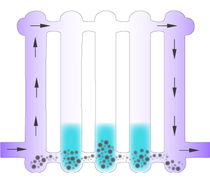 A by-product of the chemical reaction between metals and liquids is sludge. As this deposit builds up in the bottom of radiators, as the water flows around it, it slowly causes cold spots on radiators and blocks piping.
